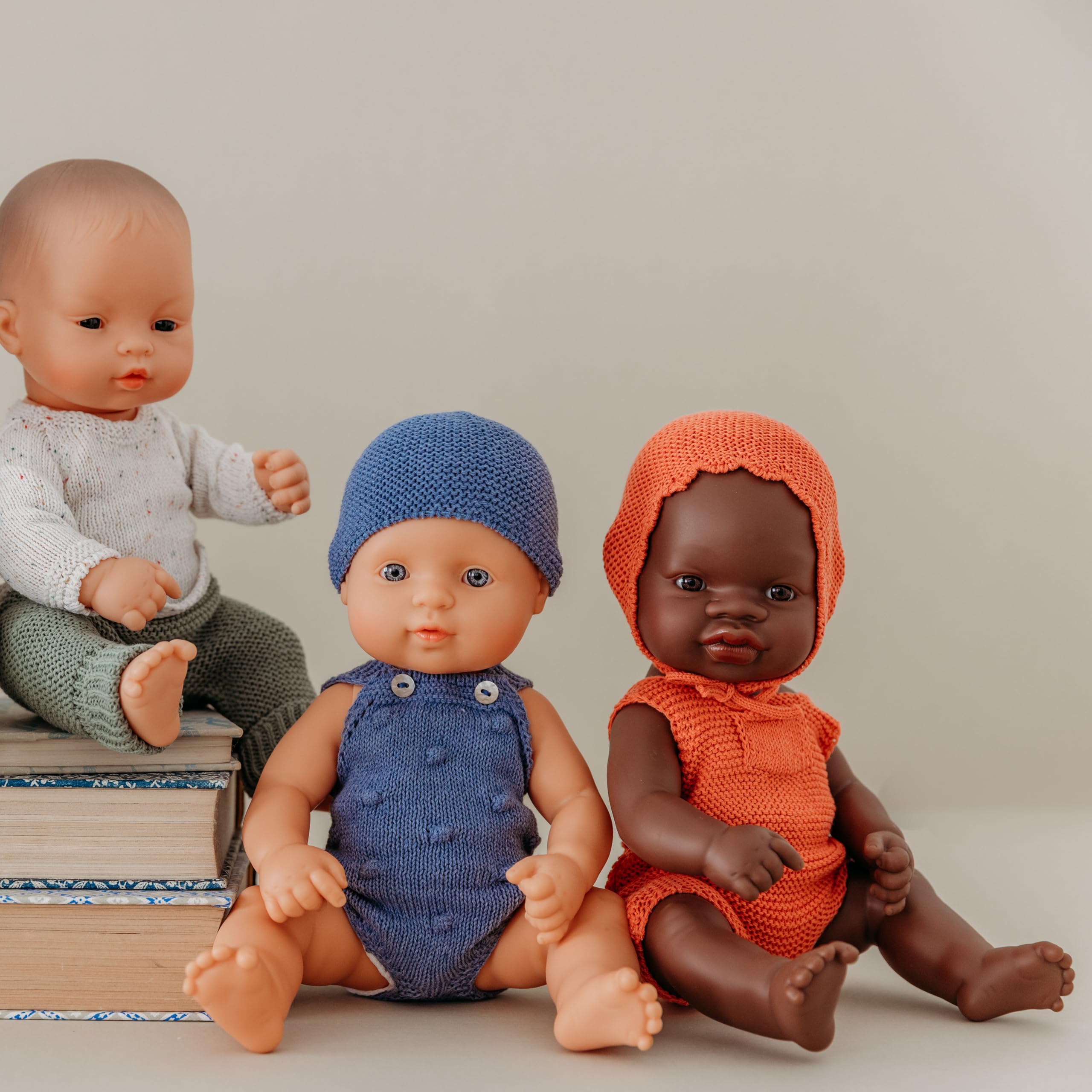Miniland Clothes for Dolls 12 5/8'' Knitted Outfit Rompers & Hood - ECO, Made in Spain, Quality, Role Play, Educational—