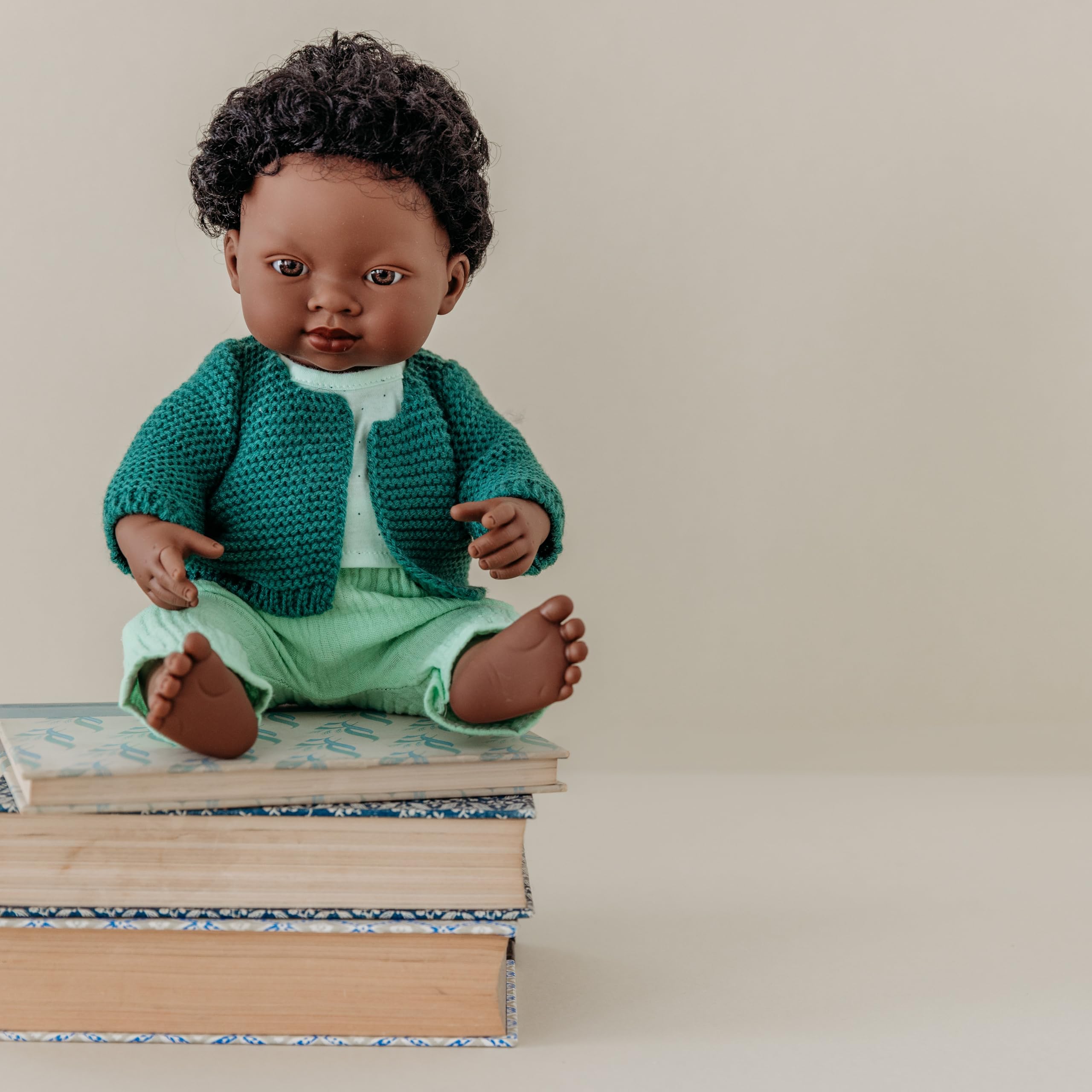 Miniland Doll 15'' African Boy (Polybag) - Made in Spain, Anatomically Correct, Baby Doll